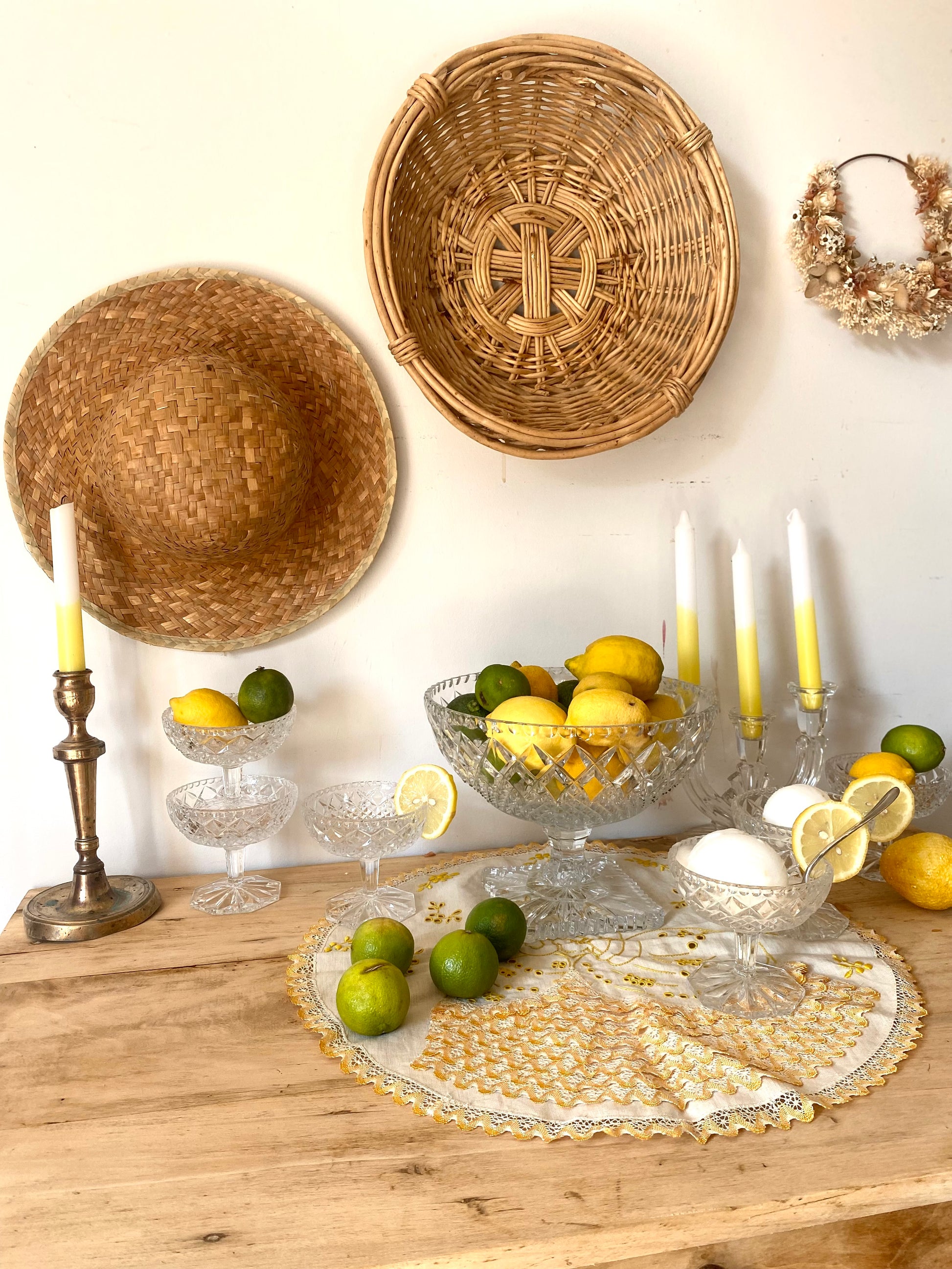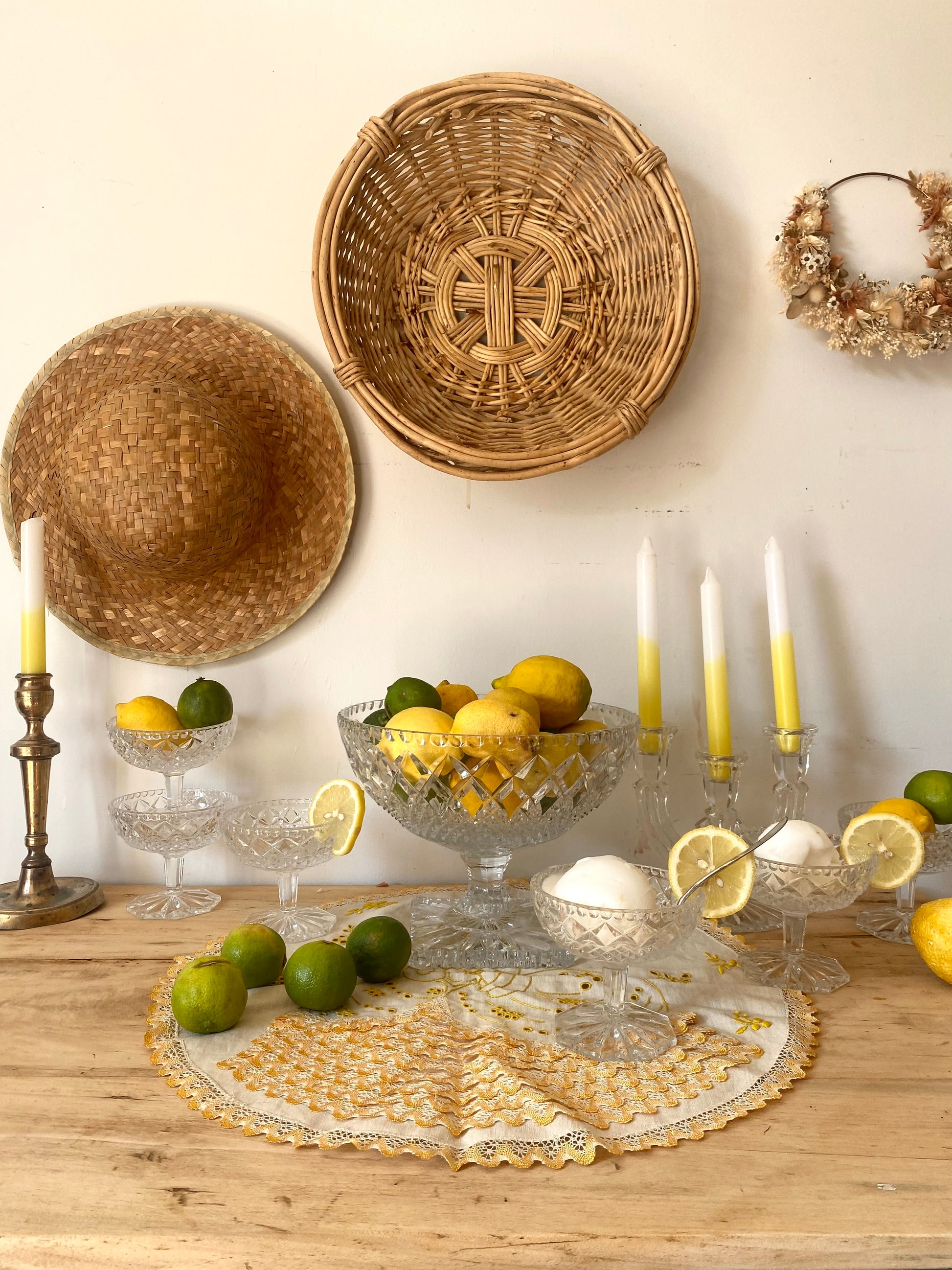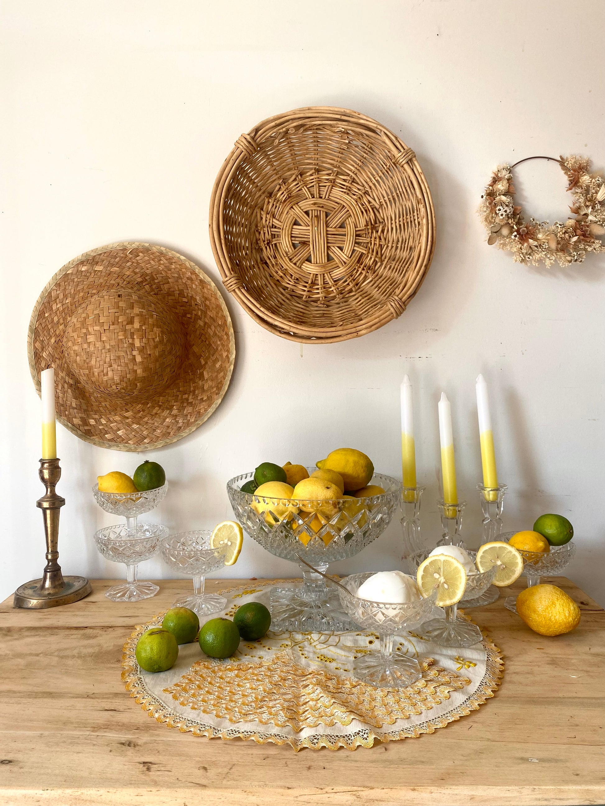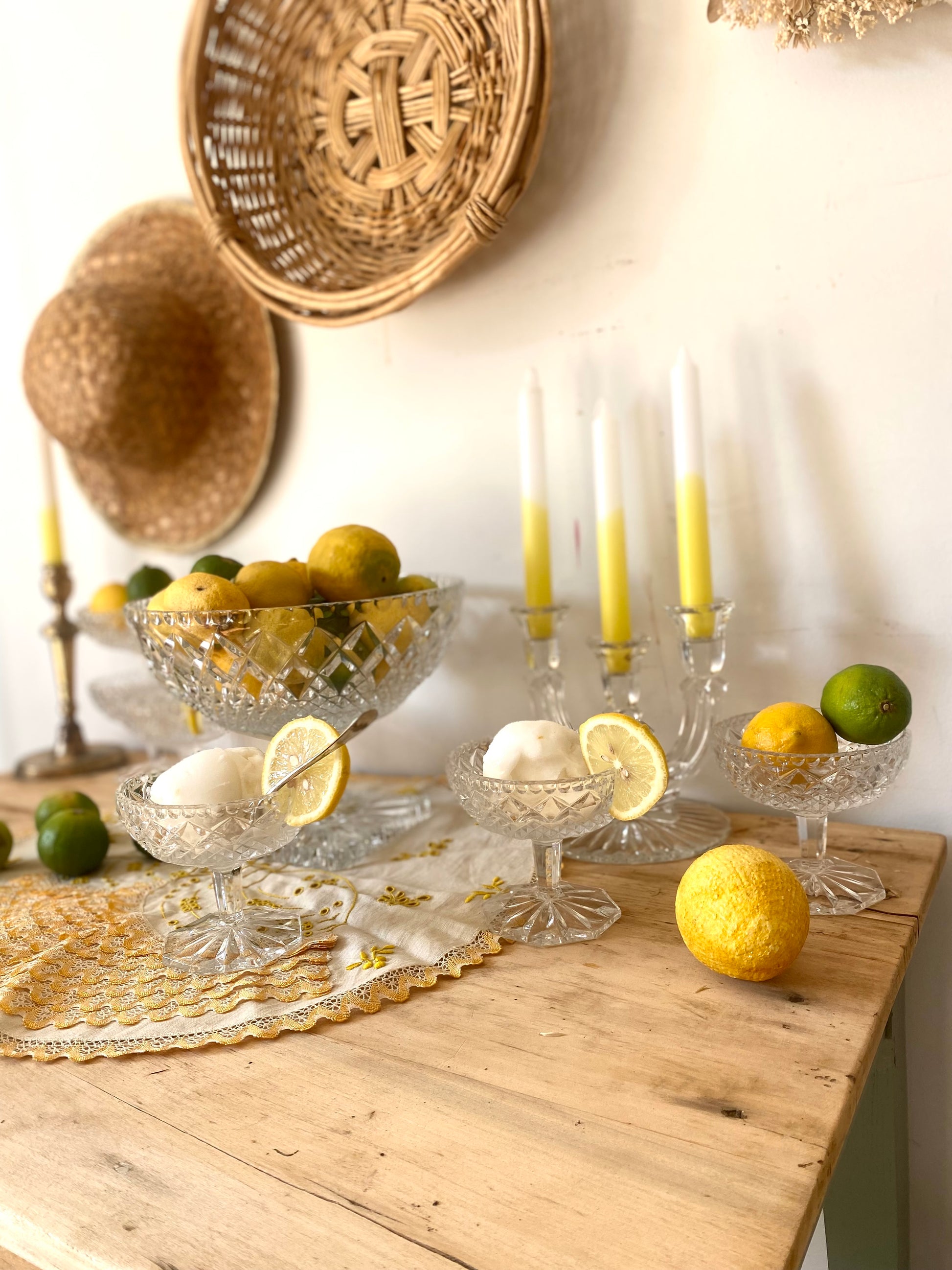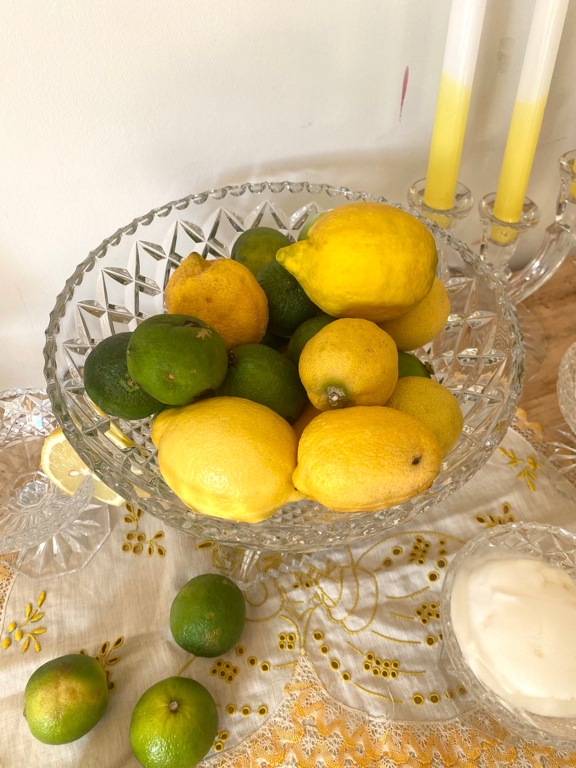 Sublime service à fruit composé d’une magnifique coupe à piédestal en cristal taillé au diamant et ses 6 coupes en excellent état.