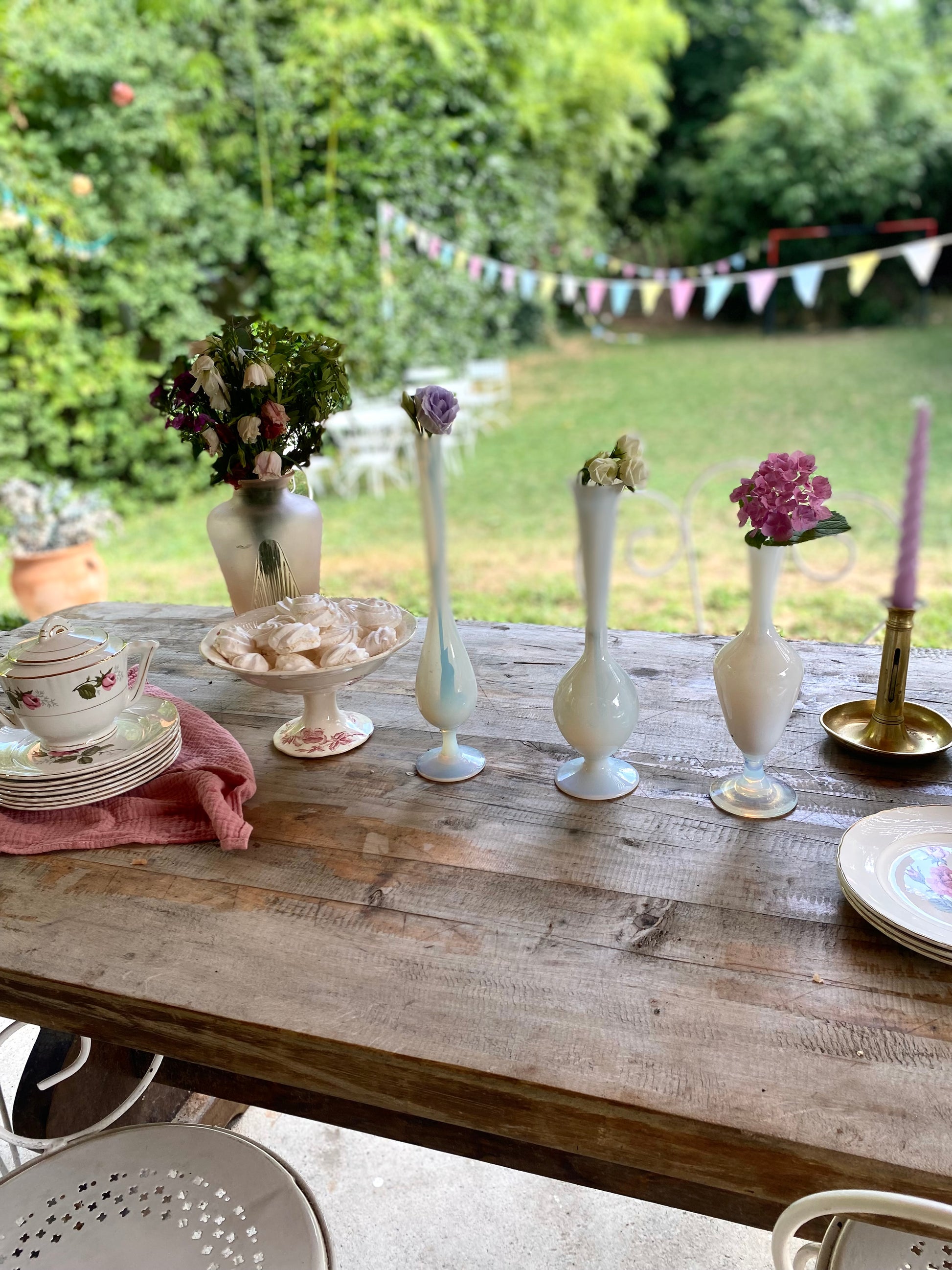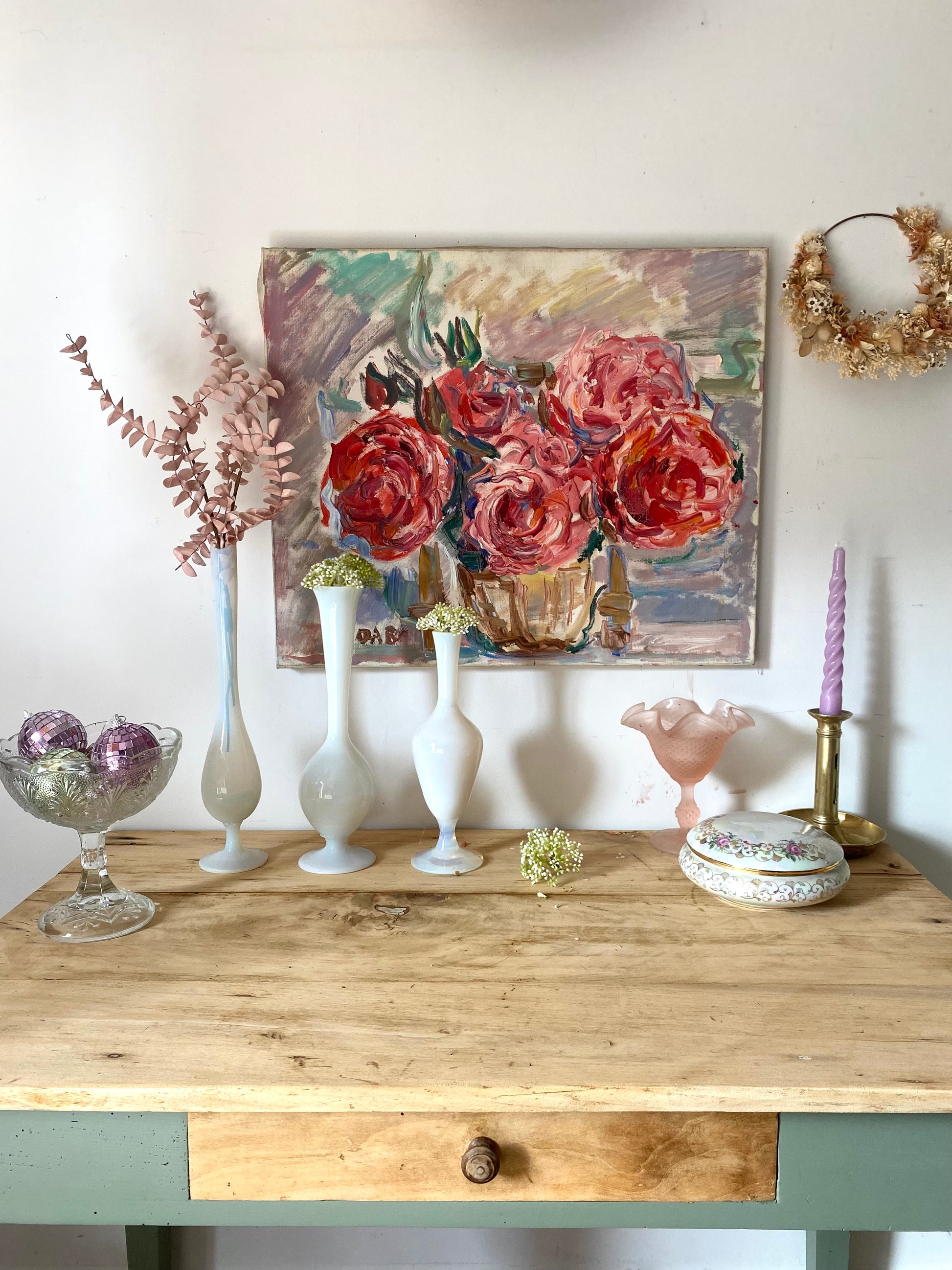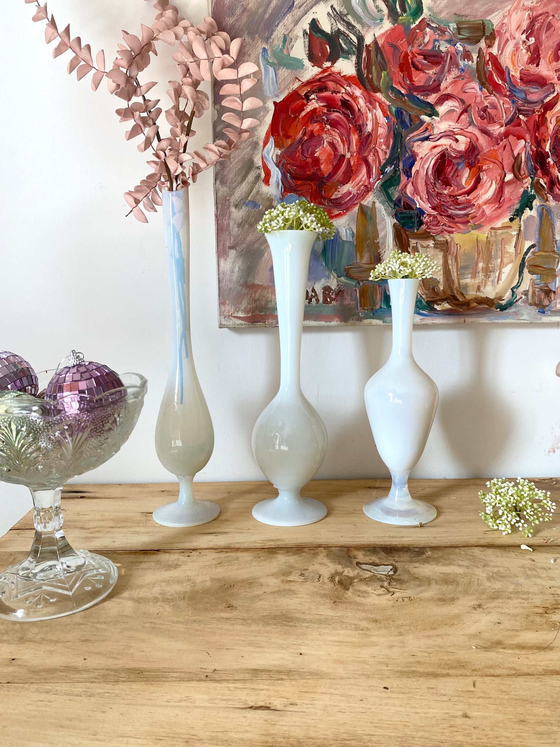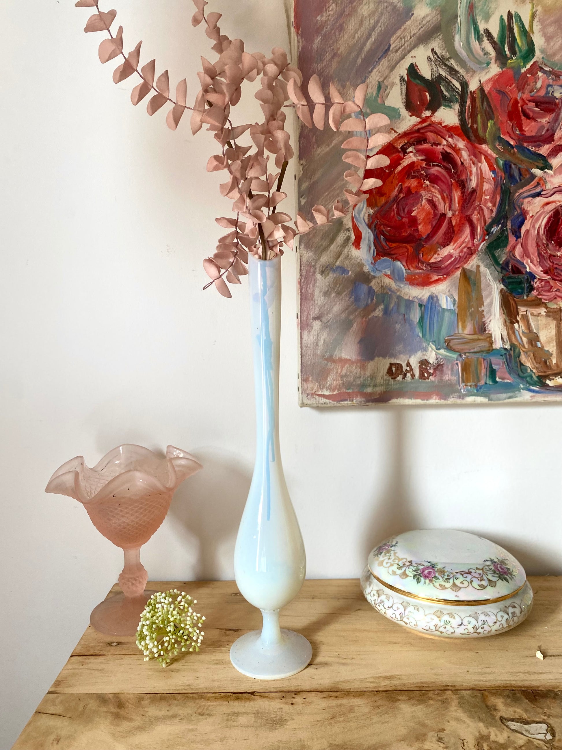 Ravissant soliflore en opaline ancienne très élégant avec sa silhouette élancée et sa teinte nacrée