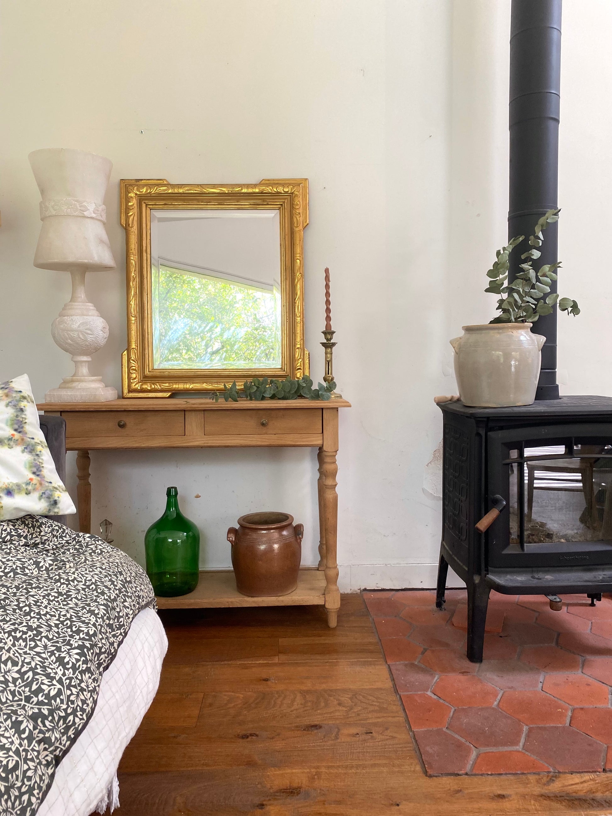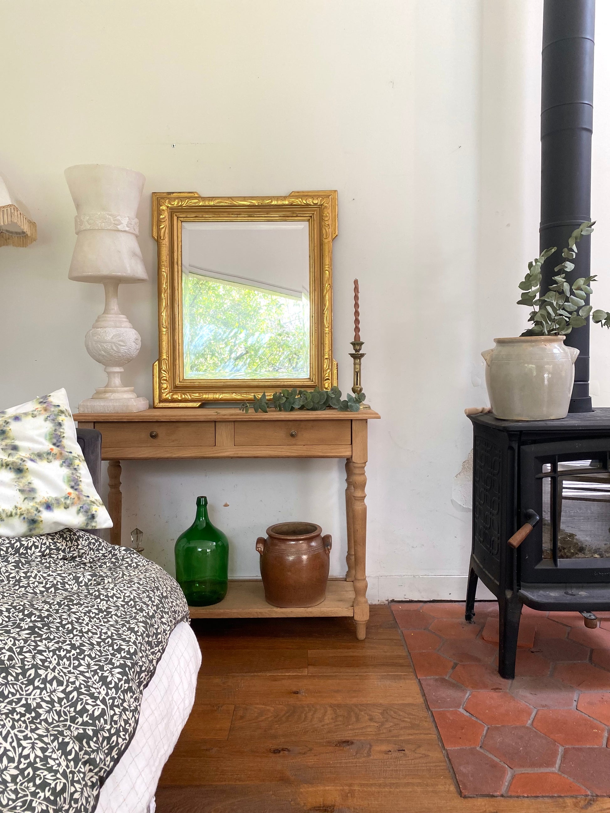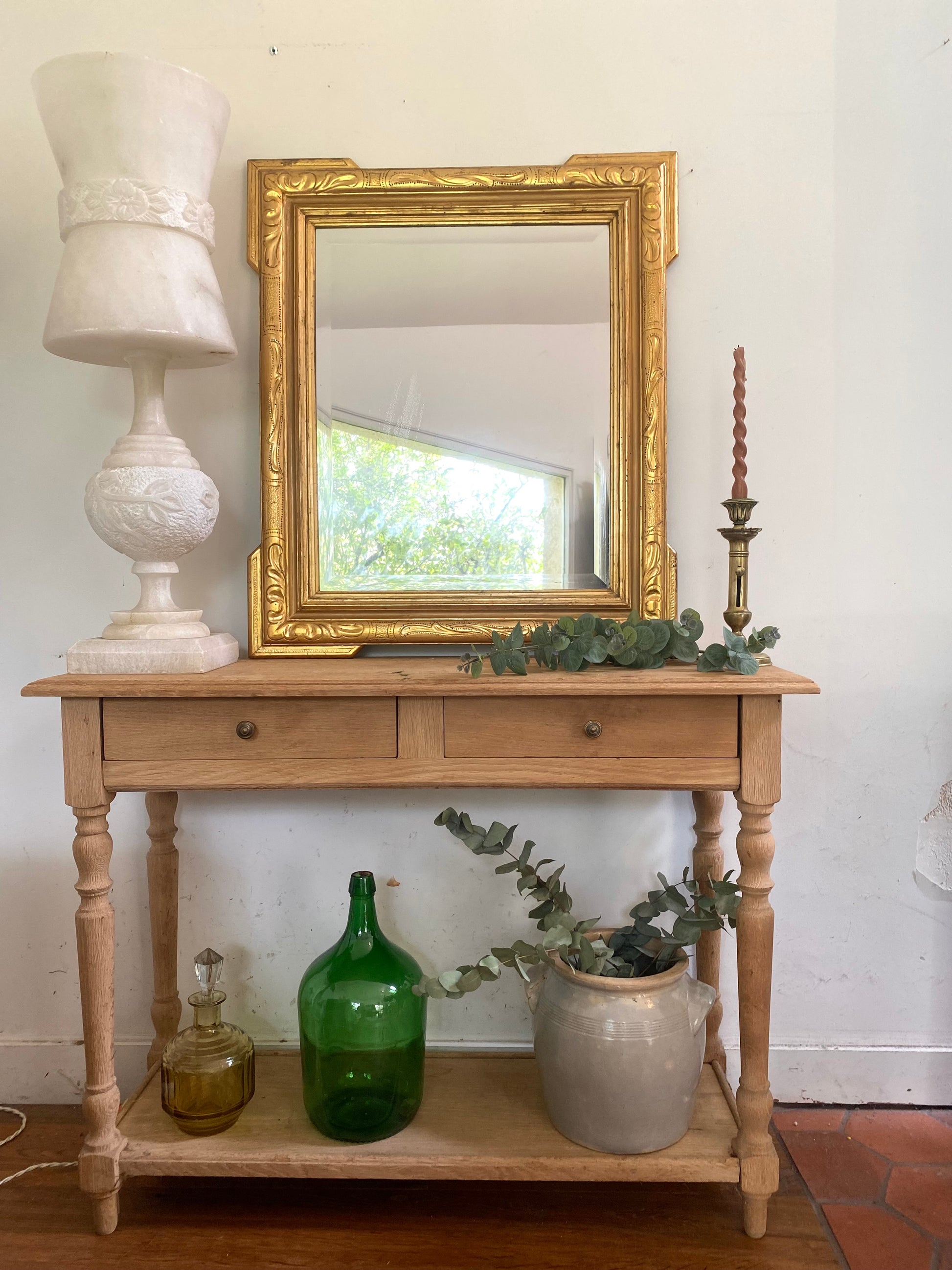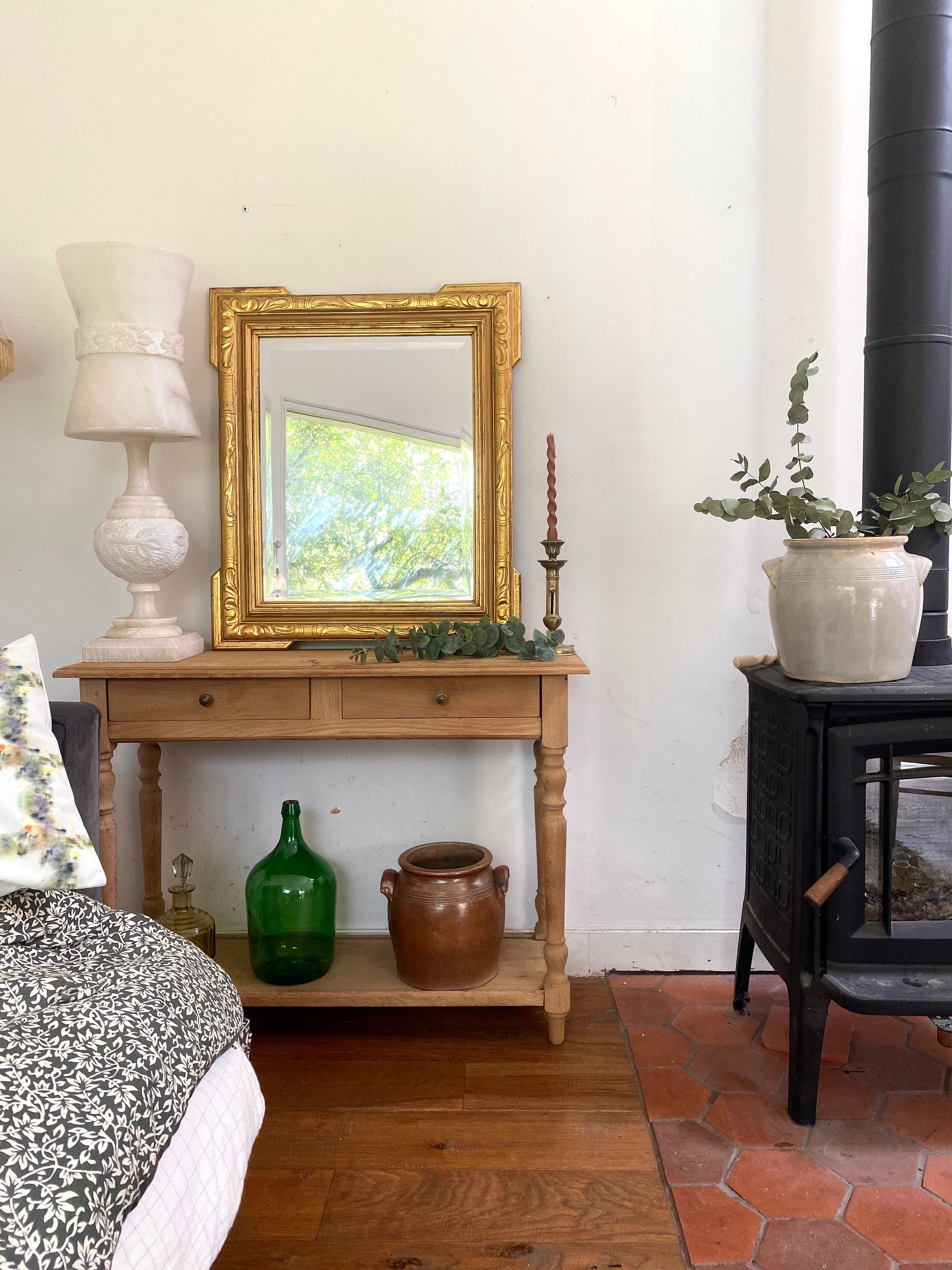 • Verre : Miroir de belle qualité avec un large biseau d'origine, apportant beaucoup de profondeur et d'éclat à la pièce.