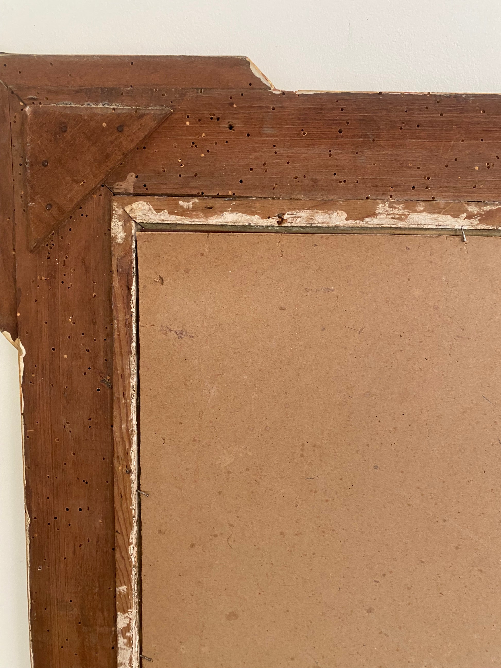 • Cadre : Structure en bois massif avec décor en stuc. Belle patine dorée ancienne.