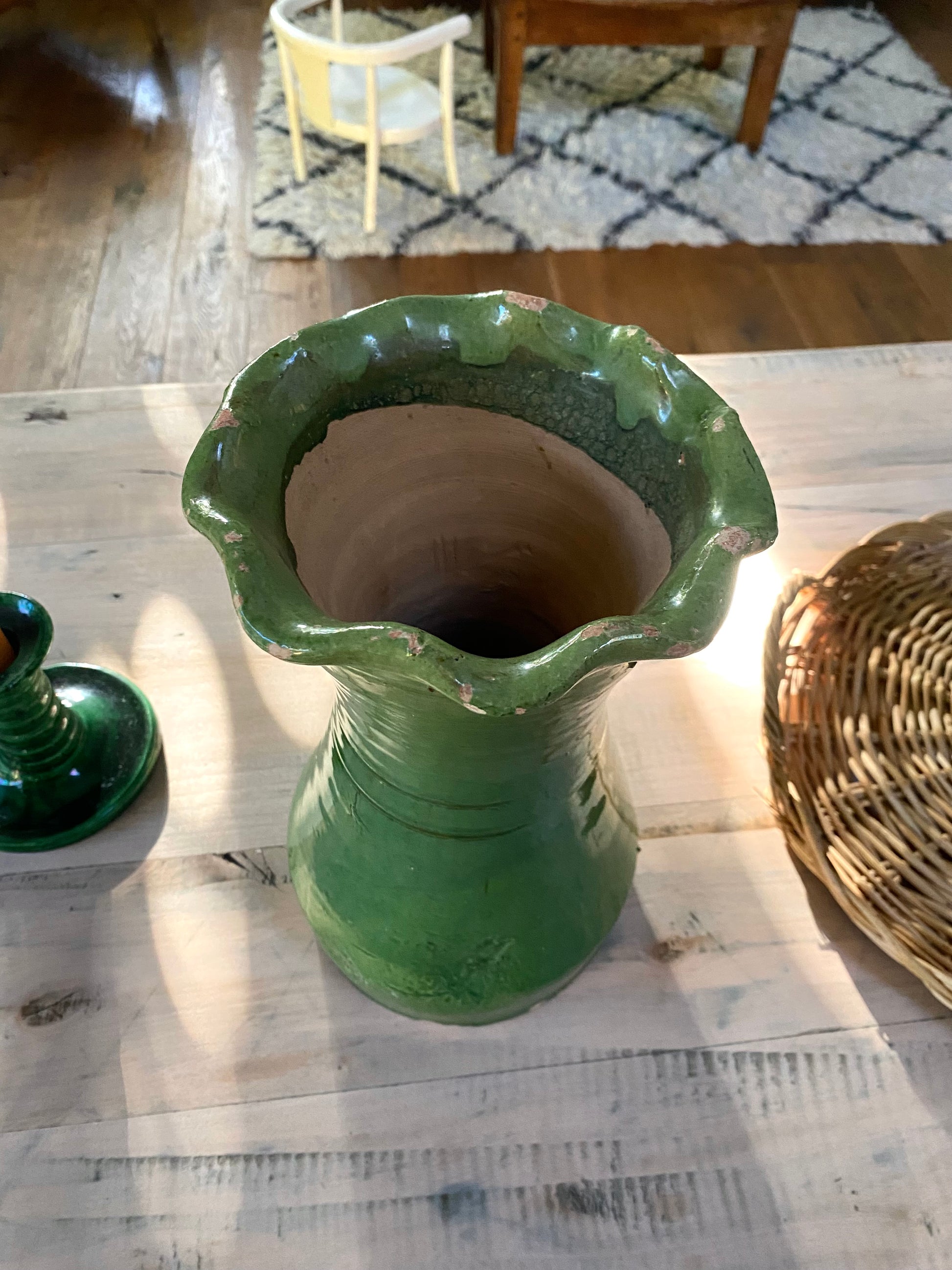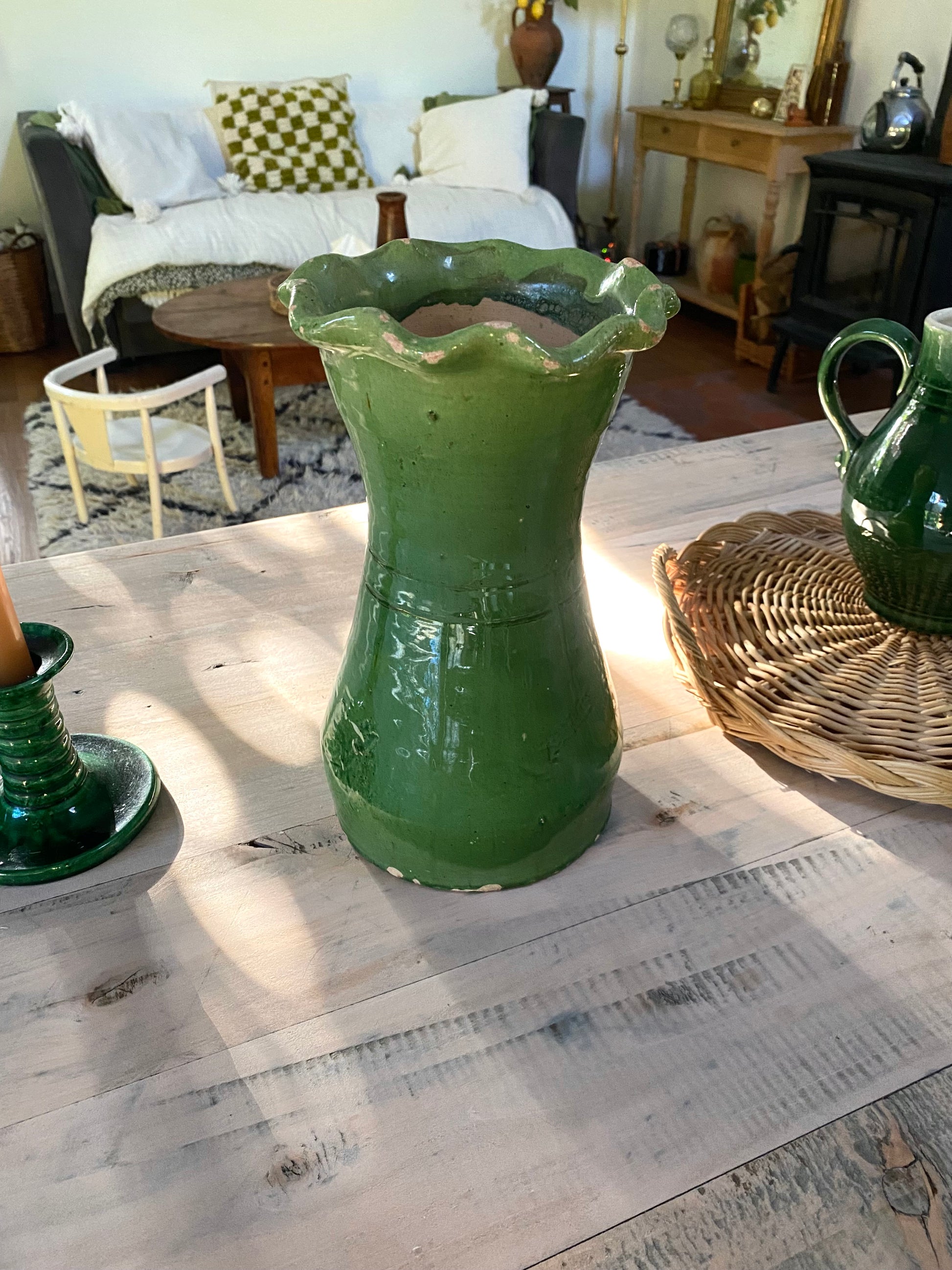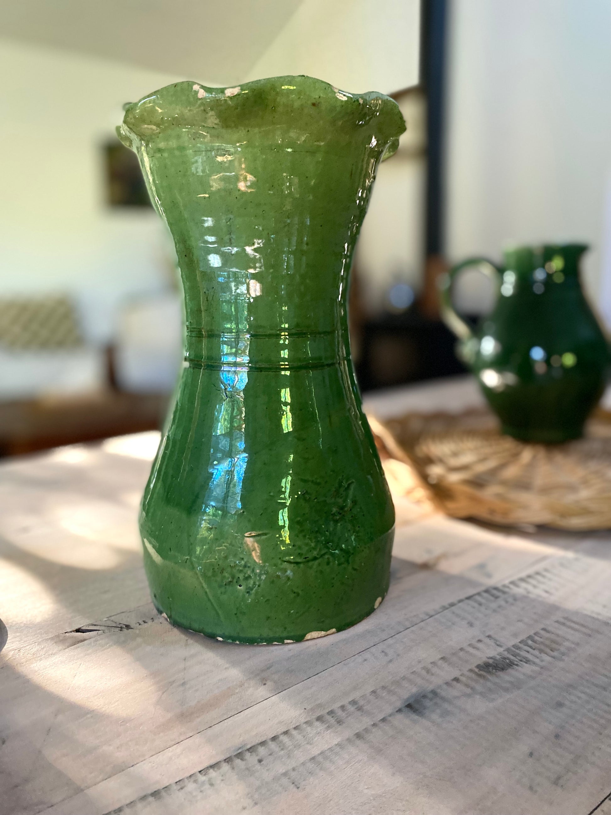Magnifique grand vase en céramique vernissée verte.