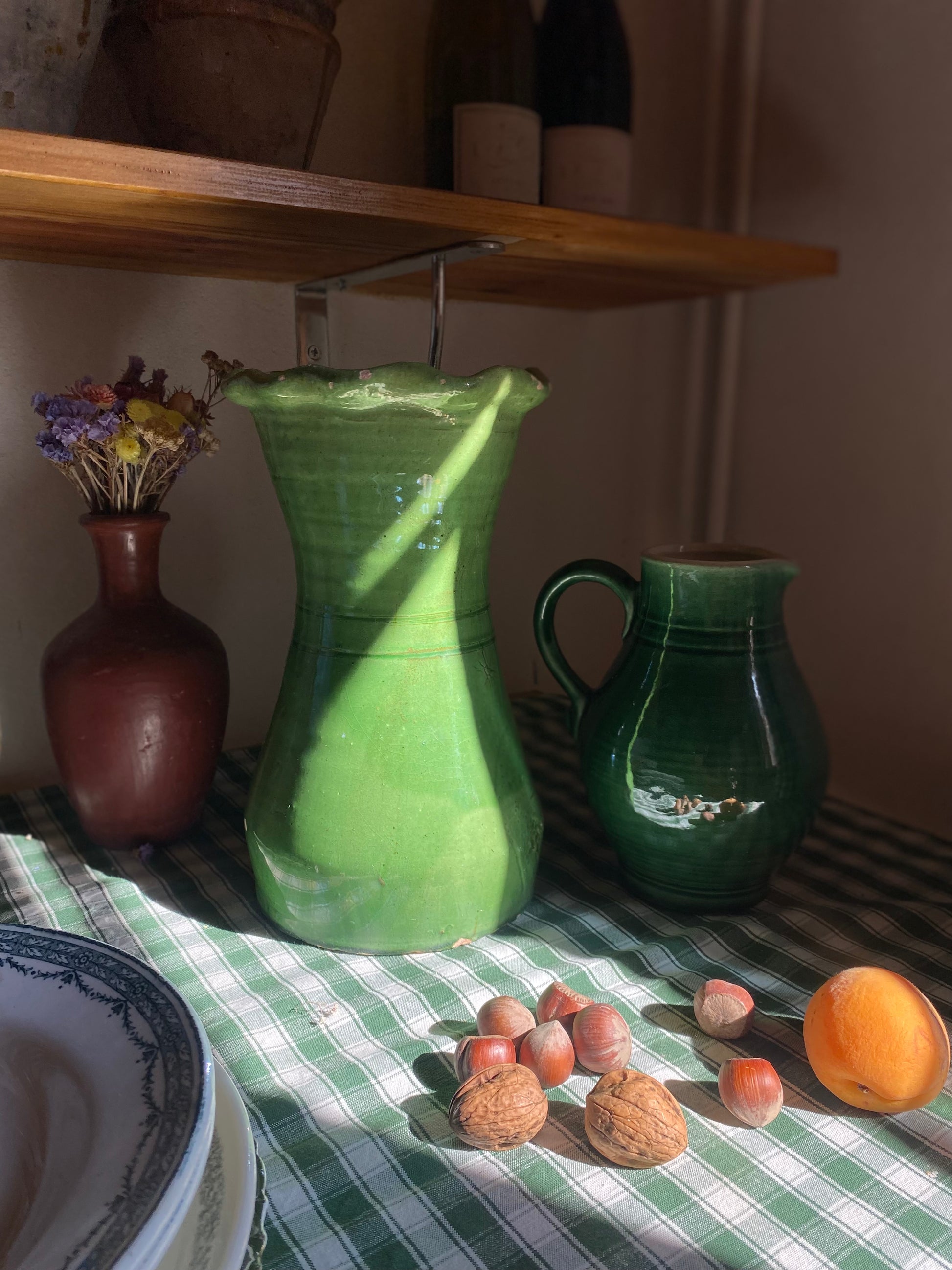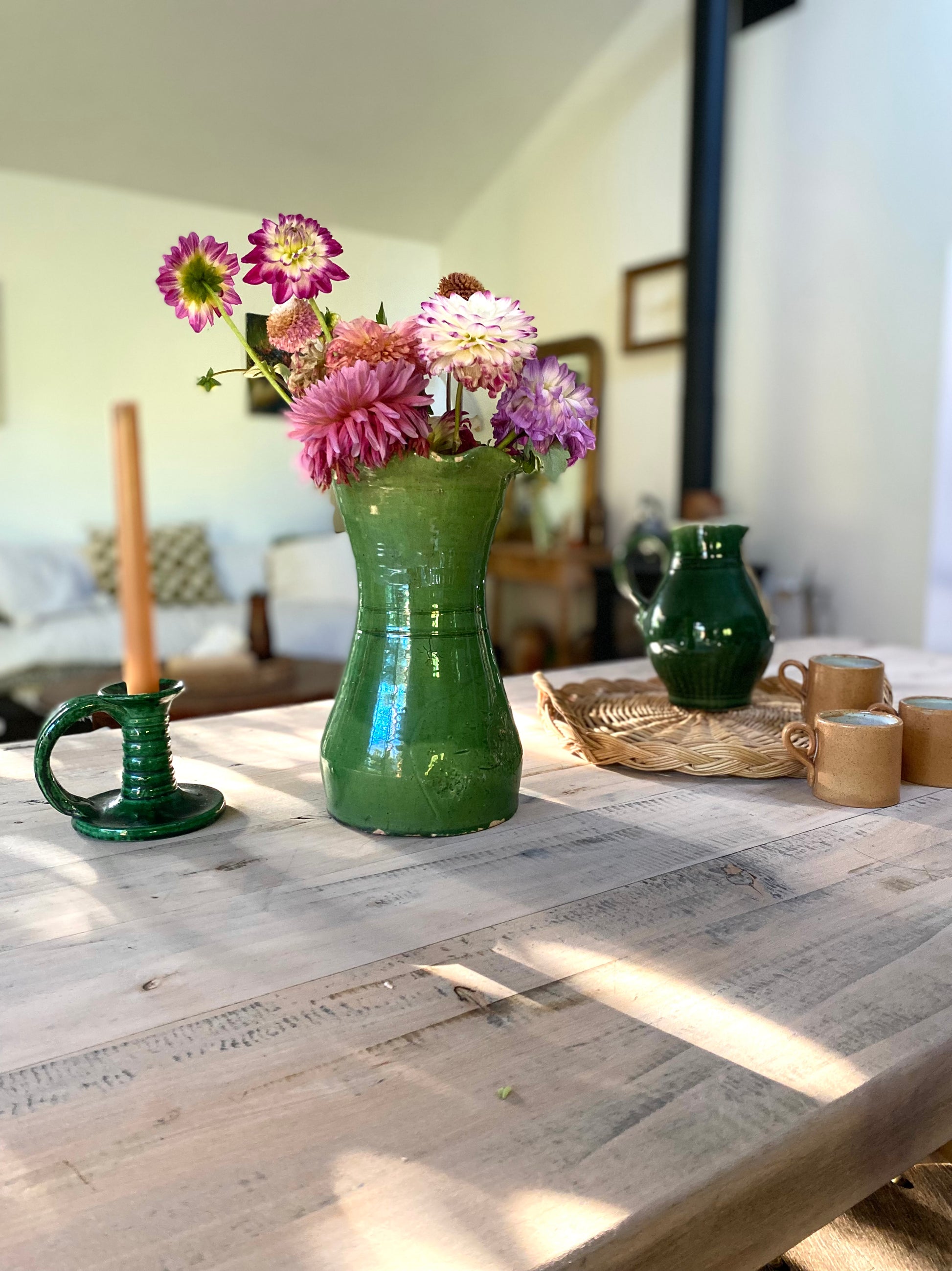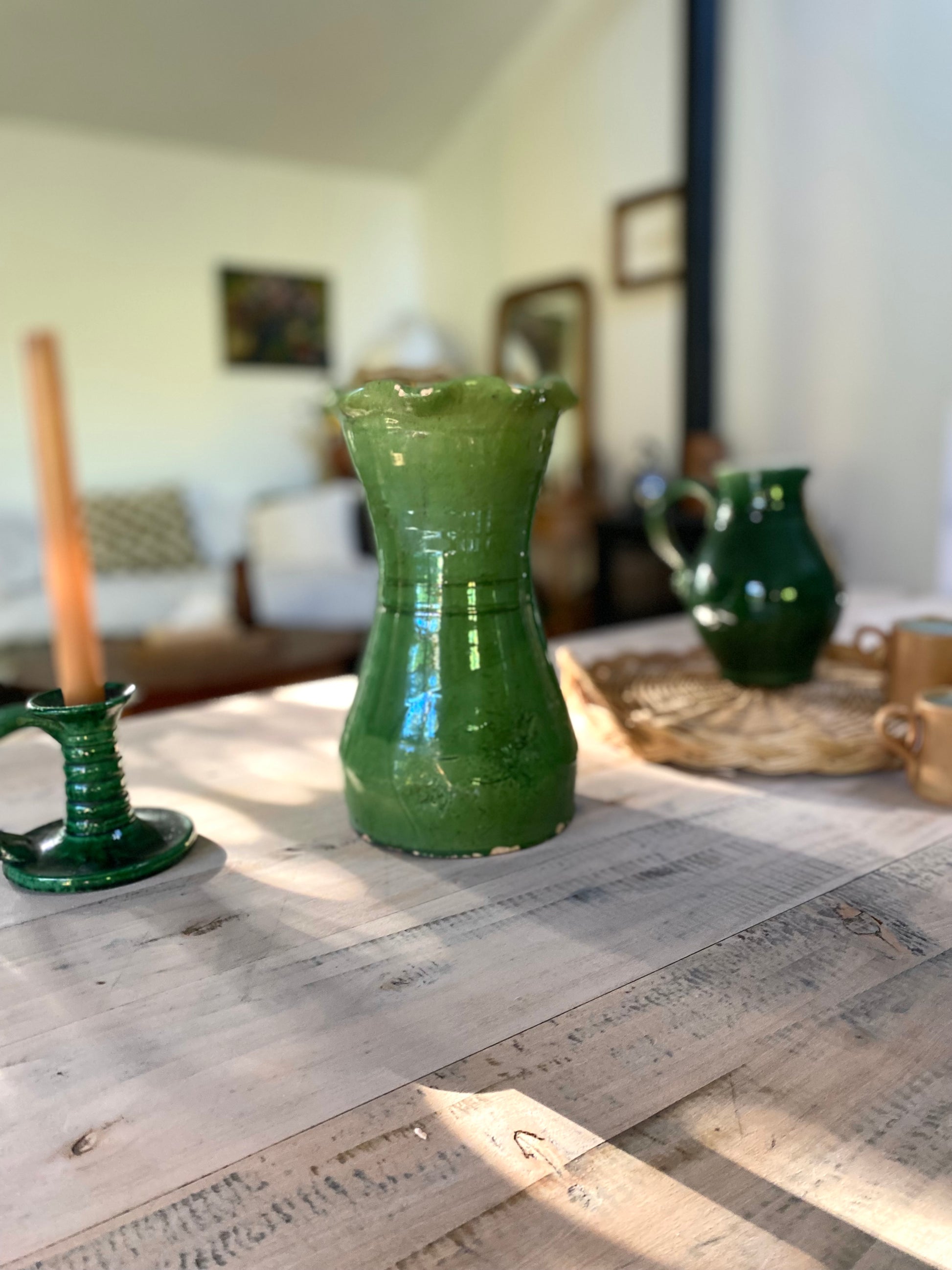 Magnifique grand vase en céramique vernissée verte.